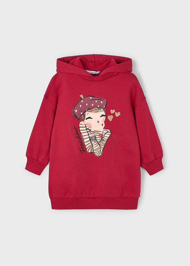 Sukienka dla dziewczynki dresowa z kapturem czerwona